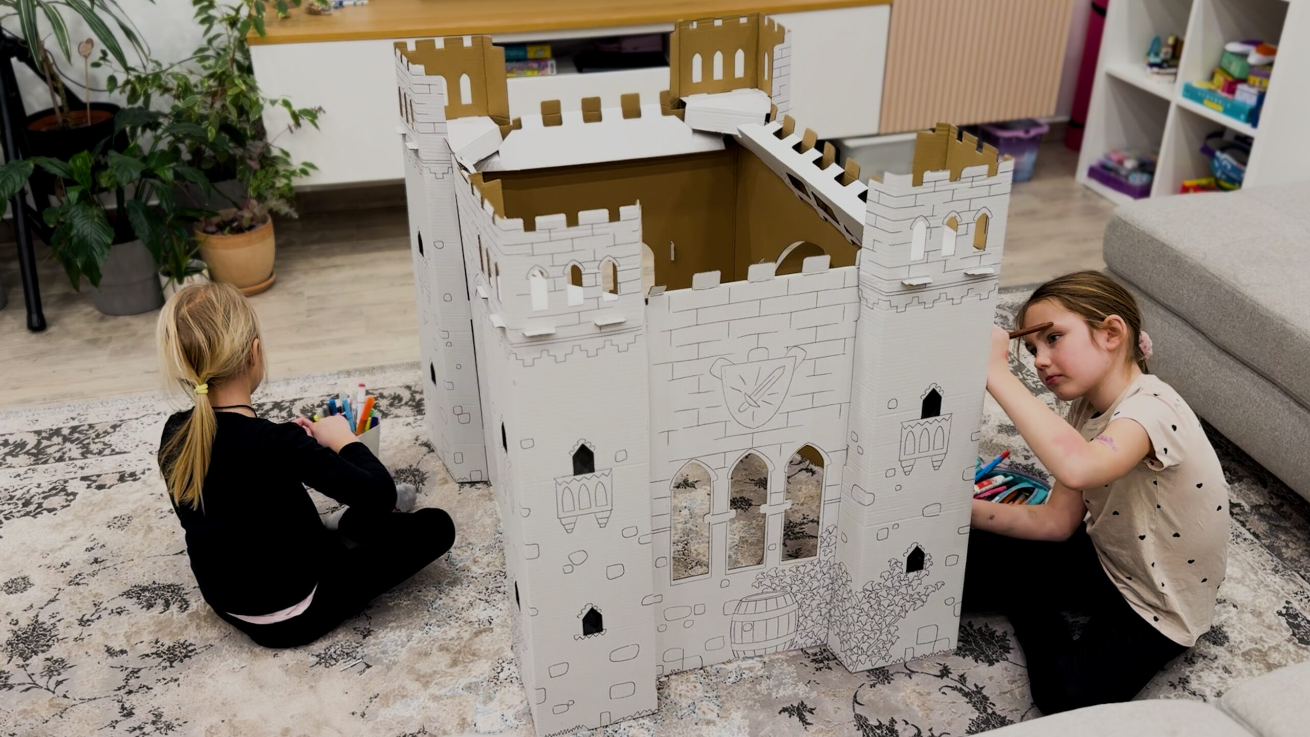 Az óriás színezők (kívül festés, belül berendezés) fejlesztik a Szem-kéz koordinációt (Hand-eye coordination) és gyakorolják a Finommotorikát (Fine Motor Skills | Apró, precíz mozgások), ami a magabiztos írástanulás elengedhetetlen előfeltétele.