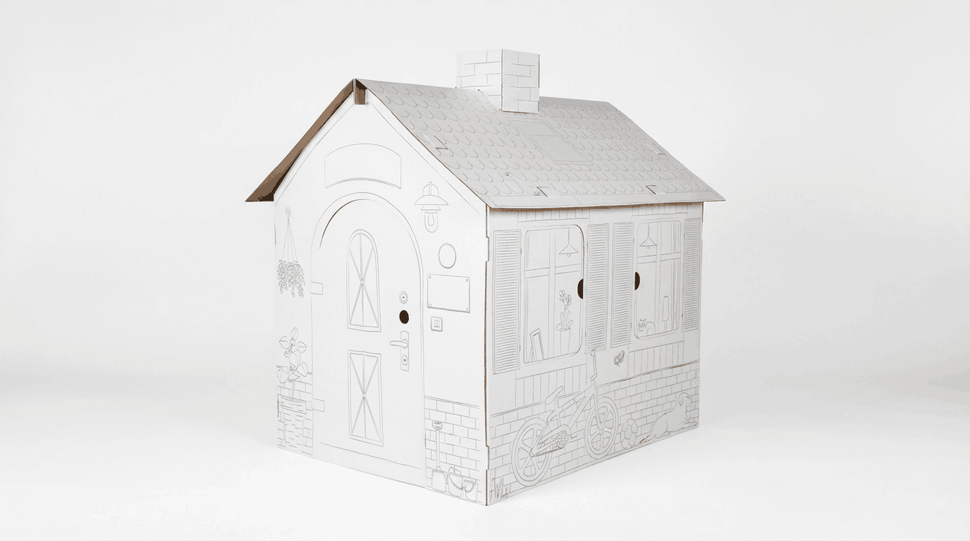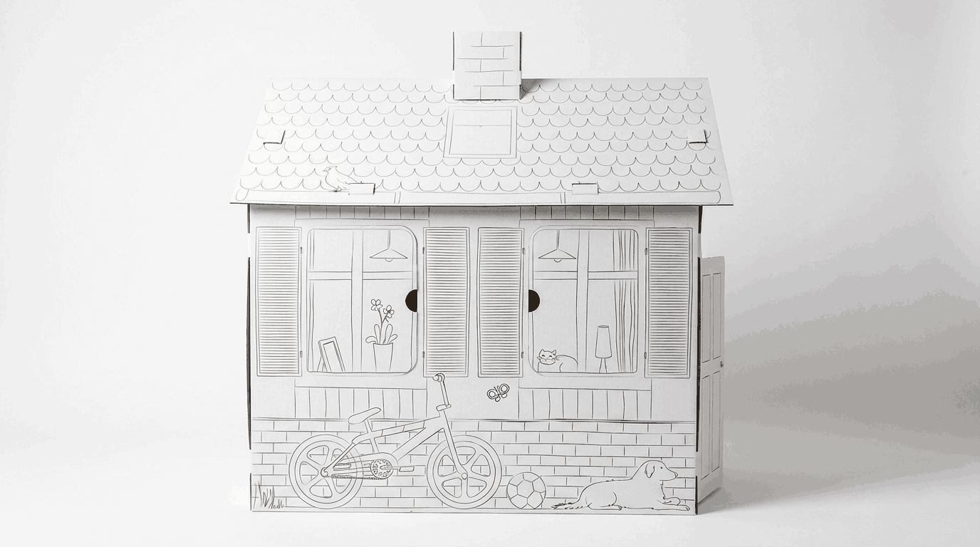A YOUR HOUSE minden nap mássá válhat. Ma egy meghitt kis otthon, holnap bolt, orvosi rendelő, ügynökség, páncélterem vagy titkos központ. A karton itt csak a váz – a teljes világot a gyerek építi köré saját képzeletéből.