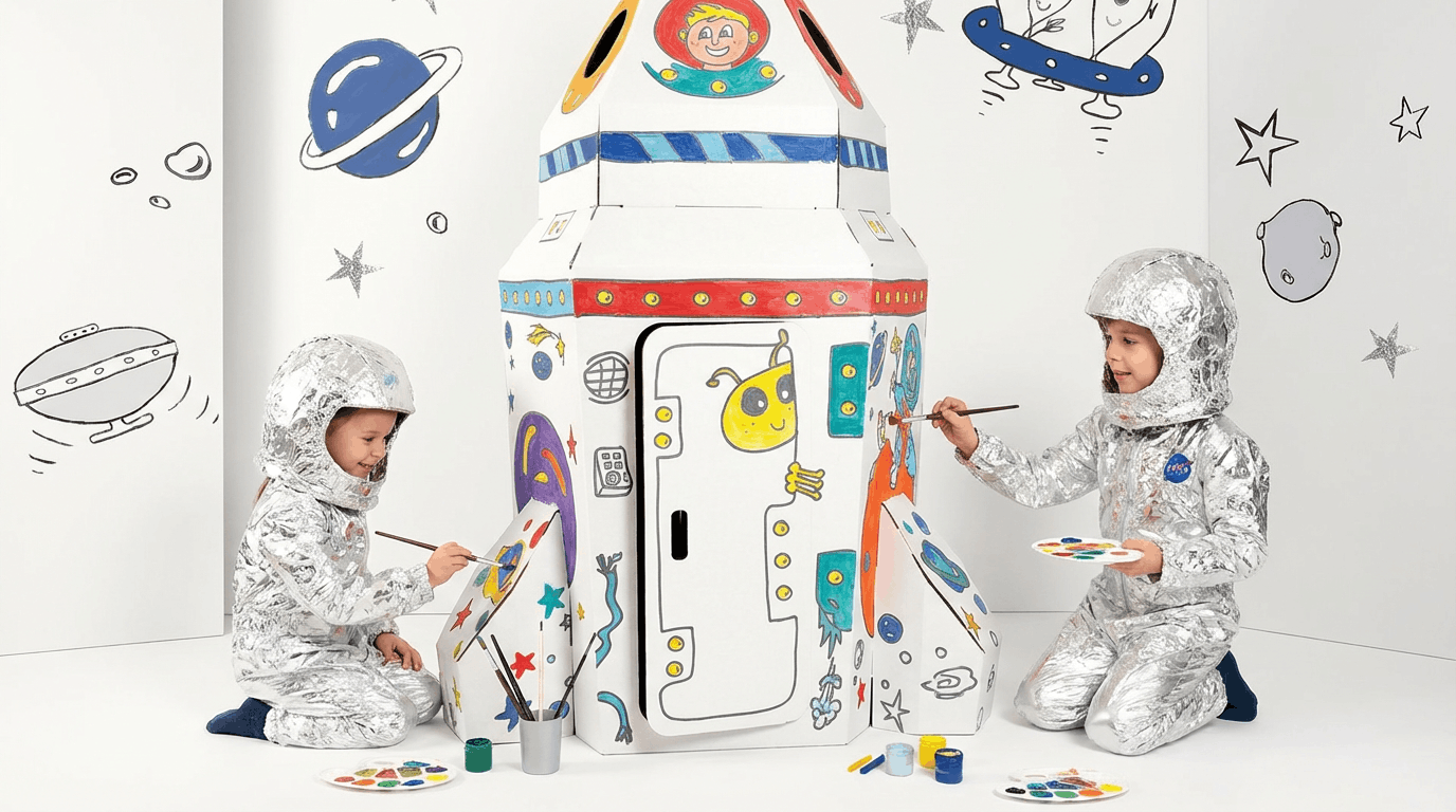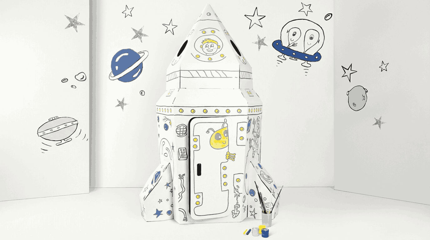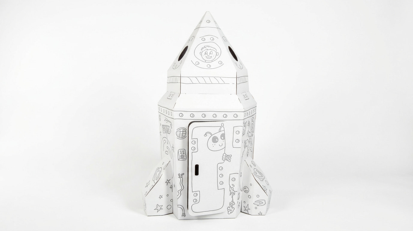 A SPACECRAFT napról napra új funkciót kaphat. Lehet rakéta, űrállomás, mentőegység, bolygófelderítő jármű vagy titkos parancsnoki központ. A karton itt csak a váz – a valódi világot a gyerek képzelete építi köré.