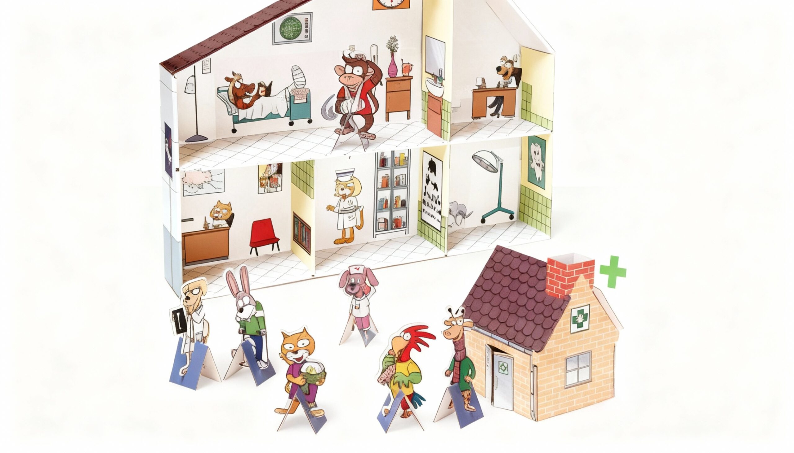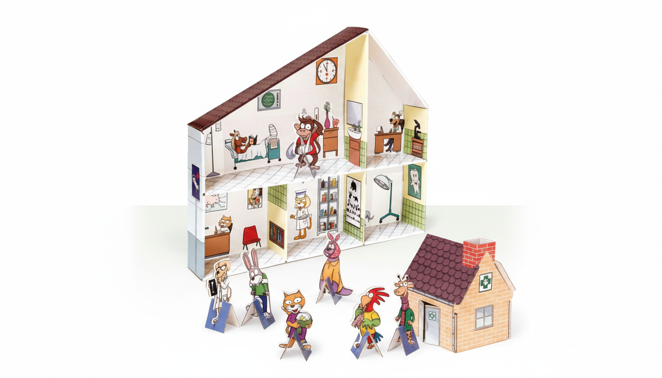 Ez a játék nem egyszerű kartonmodell: ez egy kuckózott szerepjáték-központ, ahol életre kel az empátia, a gondoskodás és a kreatív döntéshozás.